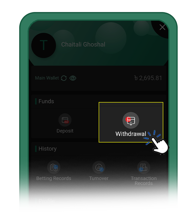 i) If you’re using the bKash/Nagad/Rocket withdrawal channels, please ensure that your payment gateway’s account is the same as the phone number you registered on Baji.