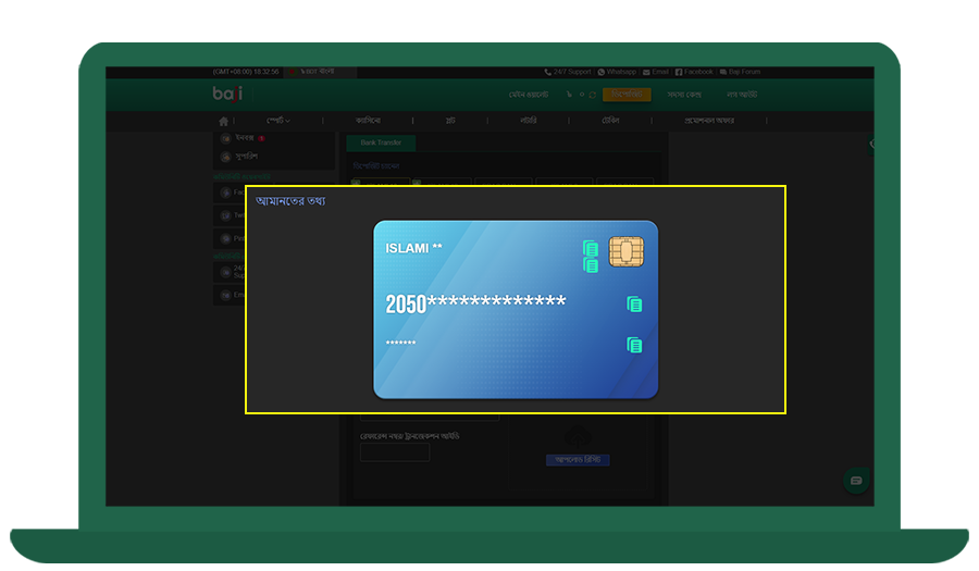নোটঃ অনুগ্রহপূর্বক নিশ্চিত করুন যে আপনার ব্যাংক একাউন্টের নাম এবং আপনার Baji একাউন্টের রেজিস্টার করা নাম যেন একই হয় সে বিষয়টি অবশ্যই নিশ্চিত করবেন, অন্য কোনো থার্ড পার্টি ব্যাংক একাউন্ট থেকে ডিপোজিট করা হলে তা গ্রহণযোগ্য হবে না।