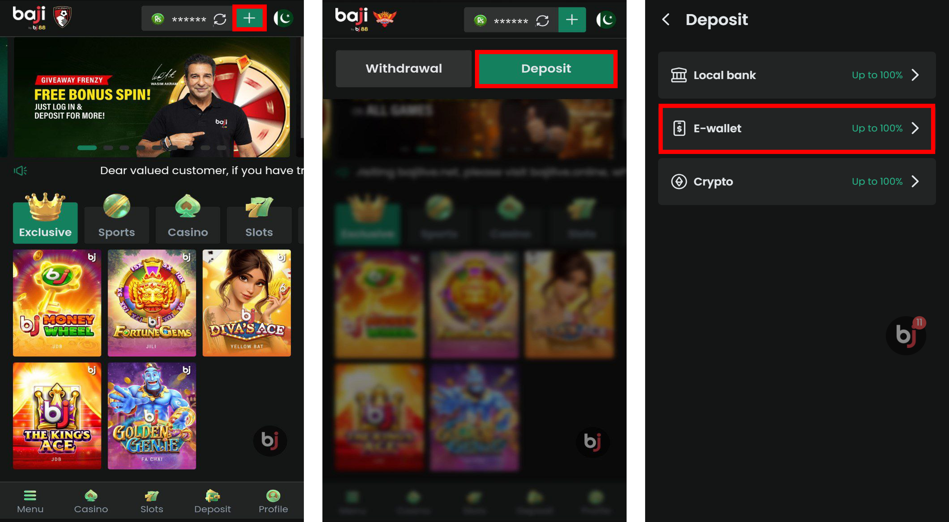 - Please ensure the transferred amount is the same as your deposit request amount. Baji will not be liable for any missing funds due to incorrect information.