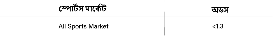 স্পোর্টস মার্কটের জন্য, আমরা টেবিলে উল্লিখিত বোনাস ওয়েজারিং এবং টার্নওভার গণনা করব না।
