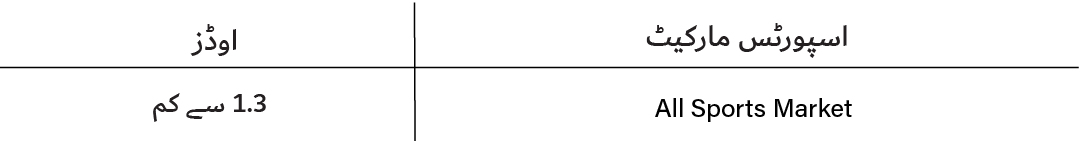 اسپورٹس مارکیٹ کے لیے، ہم ٹیبل میں درج بونس ویجرنگ اور ٹرن اوور کا حساب نہیں لگائیں گے:
